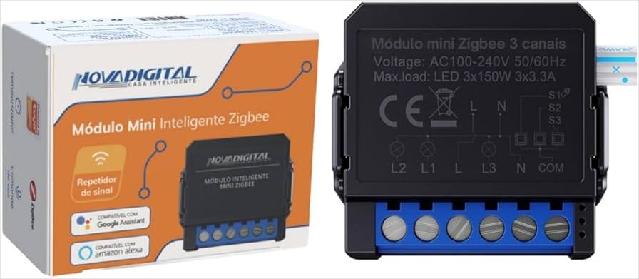 O Módulo Mini Relé 3 Canais Zigbee NovaDigital é a solução ideal para transformar sua casa em um ambiente mais inteligente e conectado. Com seu design compacto, ele pode ser facilmente integrado em caixas de passagem ou atrás de interruptores existentes, permitindo o controle remoto e a programação de até três aparelhos ou circuitos elétricos de forma independente. Utilizando a tecnologia Zigbee, este módulo garante uma comunicação estável e segura com outros dispositivos da sua casa inteligente, otimizando o consumo de energia e proporcionando maior conforto e segurança para o seu dia a dia. É perfeito para quem busca modernizar sua residência com praticidade e tecnologia de ponta.