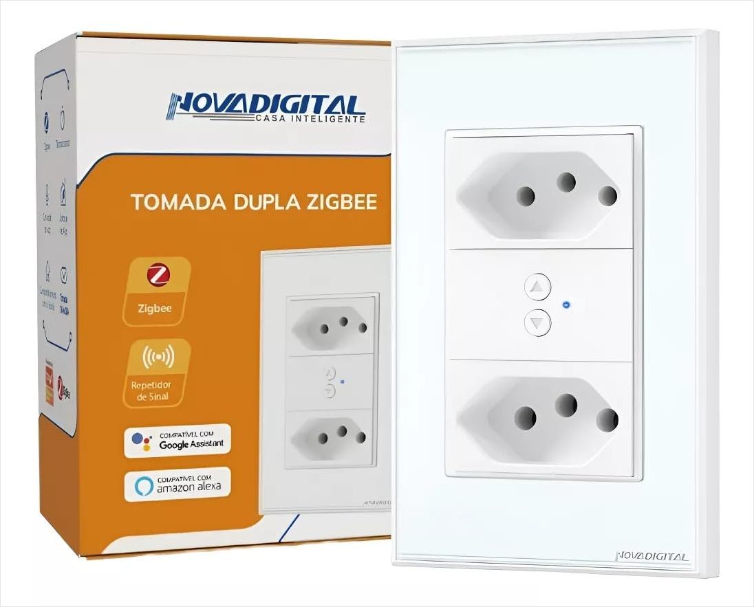 Transforme sua casa em um ambiente mais inteligente e conectado com a Tomada Dupla NovaDigital Zigbee, oferecendo controle remoto e automação residencial.